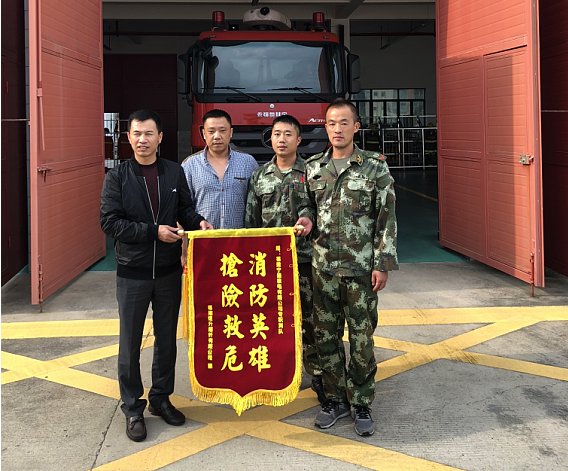10月26日下午,福建煜升超纖有限公司相關(guān)負(fù)責(zé)人專程來到公司專職消防隊,感謝專職消防隊員在撲救該公司廠房火災(zāi)中的英勇行為,將該廠的損失降低到最低。為感謝公司消防隊此次的援救行動,將印有"搶險救危,消防英雄"字樣的錦旗送到消防隊,借以向辛勤奮戰(zhàn)在滅火第一線的全體專職消防隊員表示崇高的敬意。